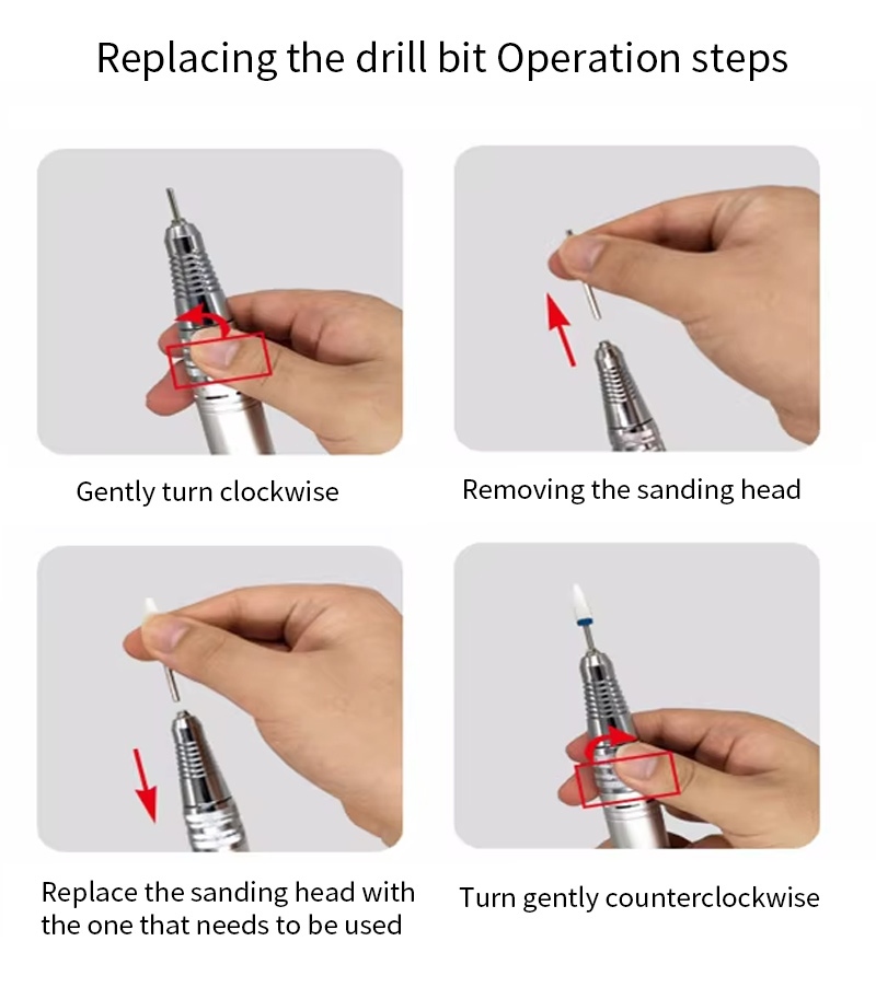 Tämä 30 000 rpm sähköisen kynsiporan vaihtoporan toimintatapa, eli kytke ja vedä, helppo ja kätevä, vaihto voidaan käyttää valmistumisen jälkeen.