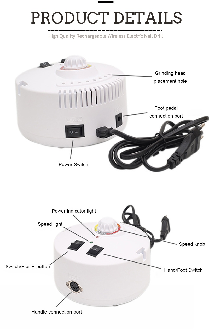 Sähköinen kynsipora, jota ei ole helppo vaurioittaa käsikappaletta 65w 35000rpm