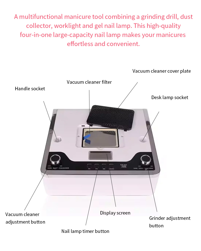4-in-1 monitoimikynsilamppu varmistaa tasaisen liiman kuivumisen ilman kutistumista. Sen kaksi valonlähdettä lämmittävät hellävaraisesti estämään käsien värjäytymistä ja silmien rasitusta. Soveltuu sekä käsille että jaloille, mikä takaa huomattavan nopean kuivumisen.
