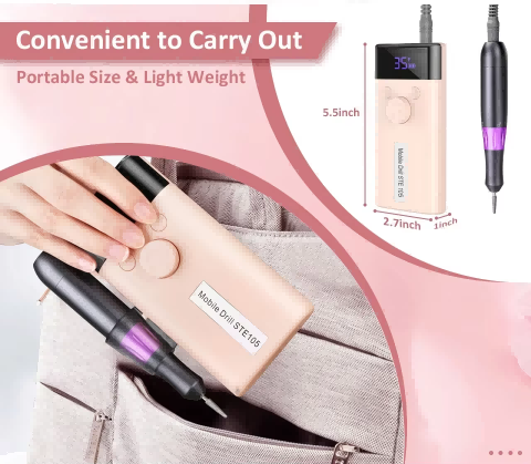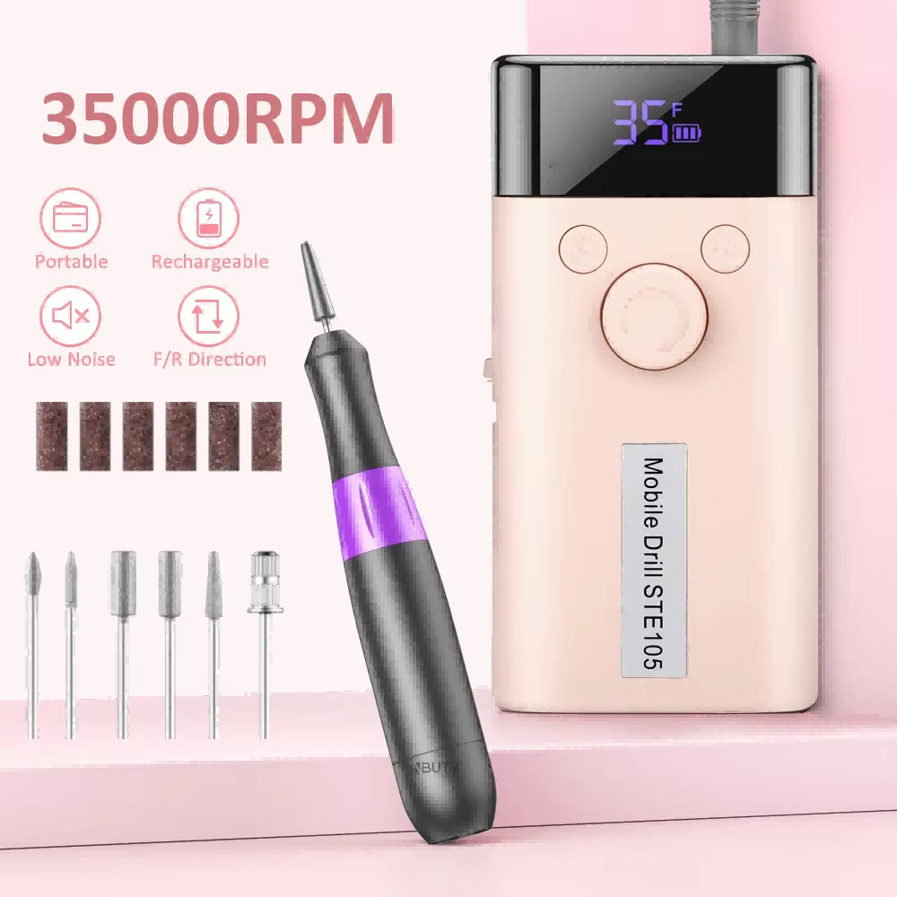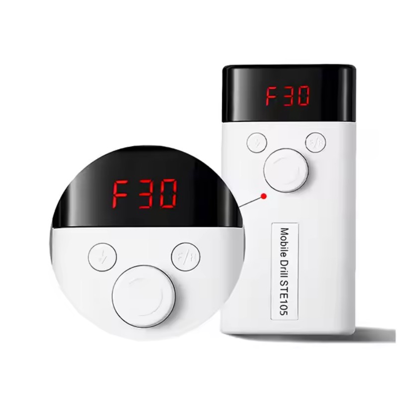 Tämän sähköisen kynsilakkauksen 30 000 rpm:n näyttösuunnittelussa on päälle/pois-kytkin ja eteen-/taaksekierto yhteensä yhden painikkeen aktivointia varten, pikalatausliitin alareunassa, vaihdettava porauspistoke ylhäällä ja kolmiasentoinen säädettävä nopeus erilaisiin tarpeisiin.