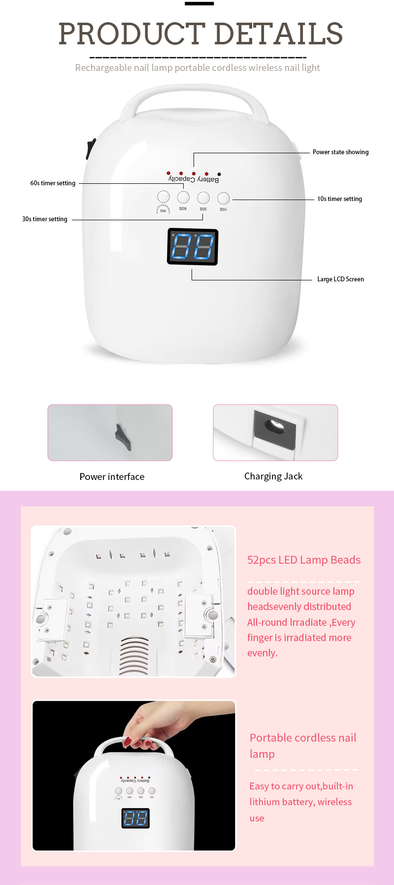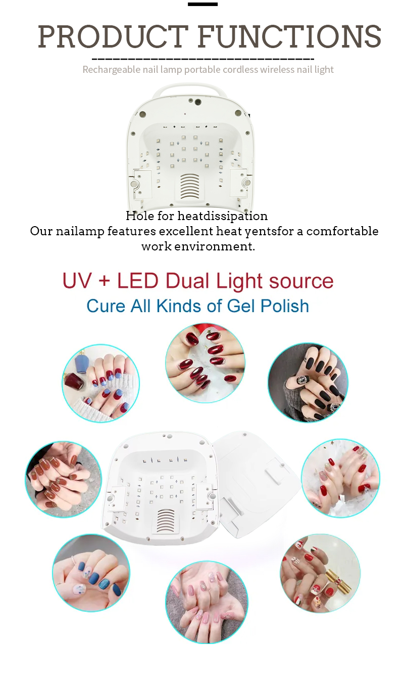 Tuote varmistaa jopa liimakuivauksen ilman kutistumista. Sen kaksoisvalonlähteet tarjoavat lempeän lämmityksen käsien värimuutoksen ja silmäjännityksen estämiseksi, sopivat molemmille käsille ja jaloille, tuottaen huomattavan nopeasti kuivaustulokset.