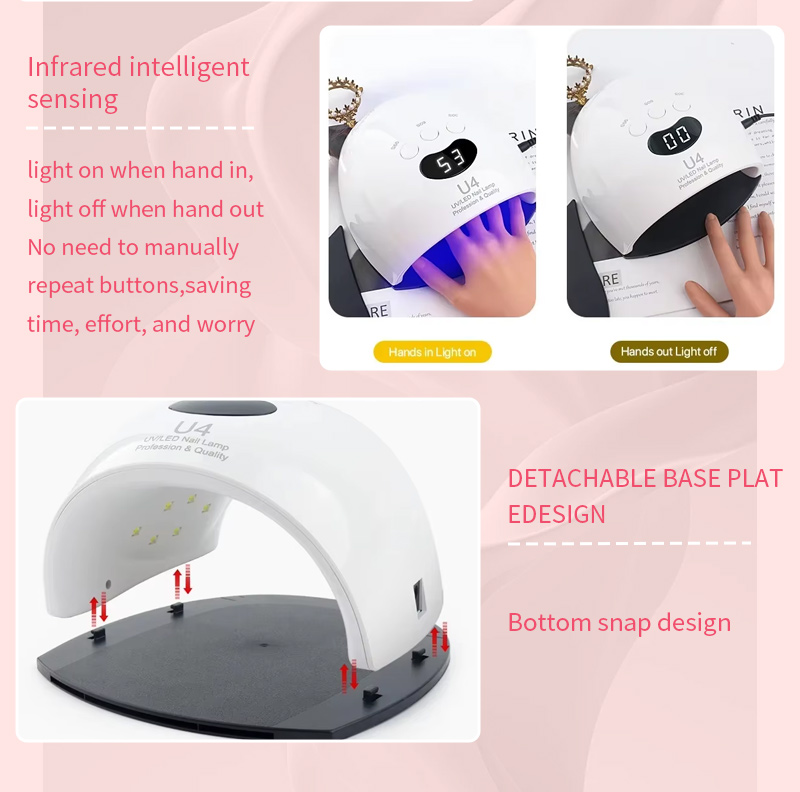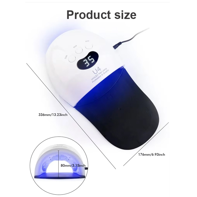 Tämä korkealaatuinen LED-kynsien kuivauslamppu varmistaa tasaisen liiman kuivumisen ilman kutistumista. Sen kaksi valonlähdettä lämmittävät hellävaraisesti estämään käsien värjäytymistä ja silmien rasitusta. Soveltuu sekä käsille että jaloille, mikä takaa huomattavan nopean kuivumisen.