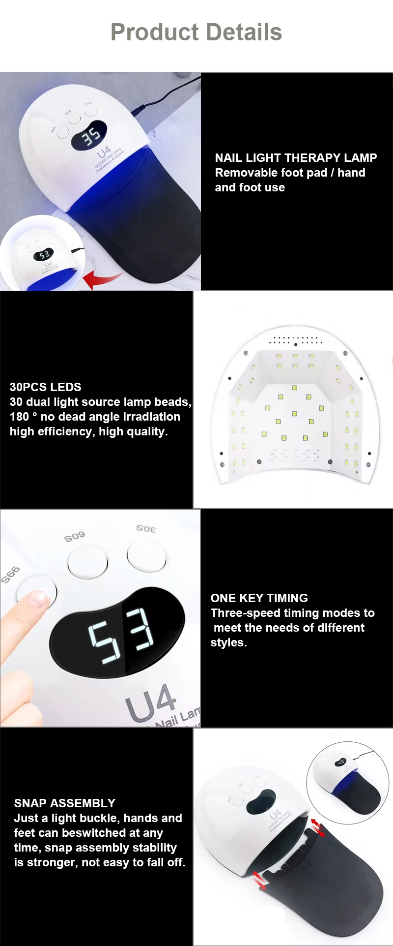 Päätuotteitamme ovat LED-kynsilamput: 186W/168W/86W/84W/80W/75W/72W/65W/60W/54W/50W/48W/36W/24W/16W/12W/6W/3W jne. Ladattavat langattomat mallit: 156W/120W/96W/90W/86W/84W/80W/72W/66W/64W/60W/54W/48W jne. Nailart: 80W/65W/60W/45W/35W/25W/15W, mallit Langaton 3W, 5W, 3W, 5W 25W, 20W, 15W jne. 25000RPM/30000RPM/35000RPM/40000RPM/45000RPM/Harjaton/Erittäin nopea harjaton. Täysi pölynkerääjä. 80W/68W/60W/48W/45W/40W/36W/30W/25W/20W/15W/6W jne., Langattomat latausmallit: 80W, 60W, 40W, 30W.
