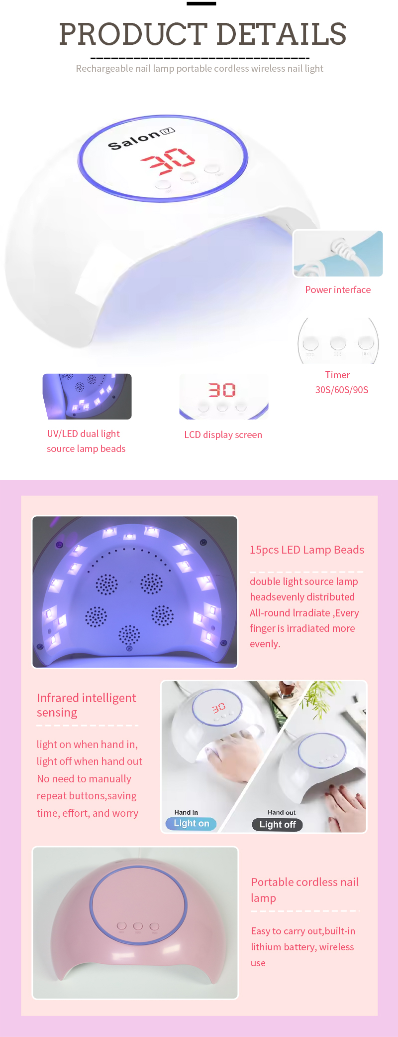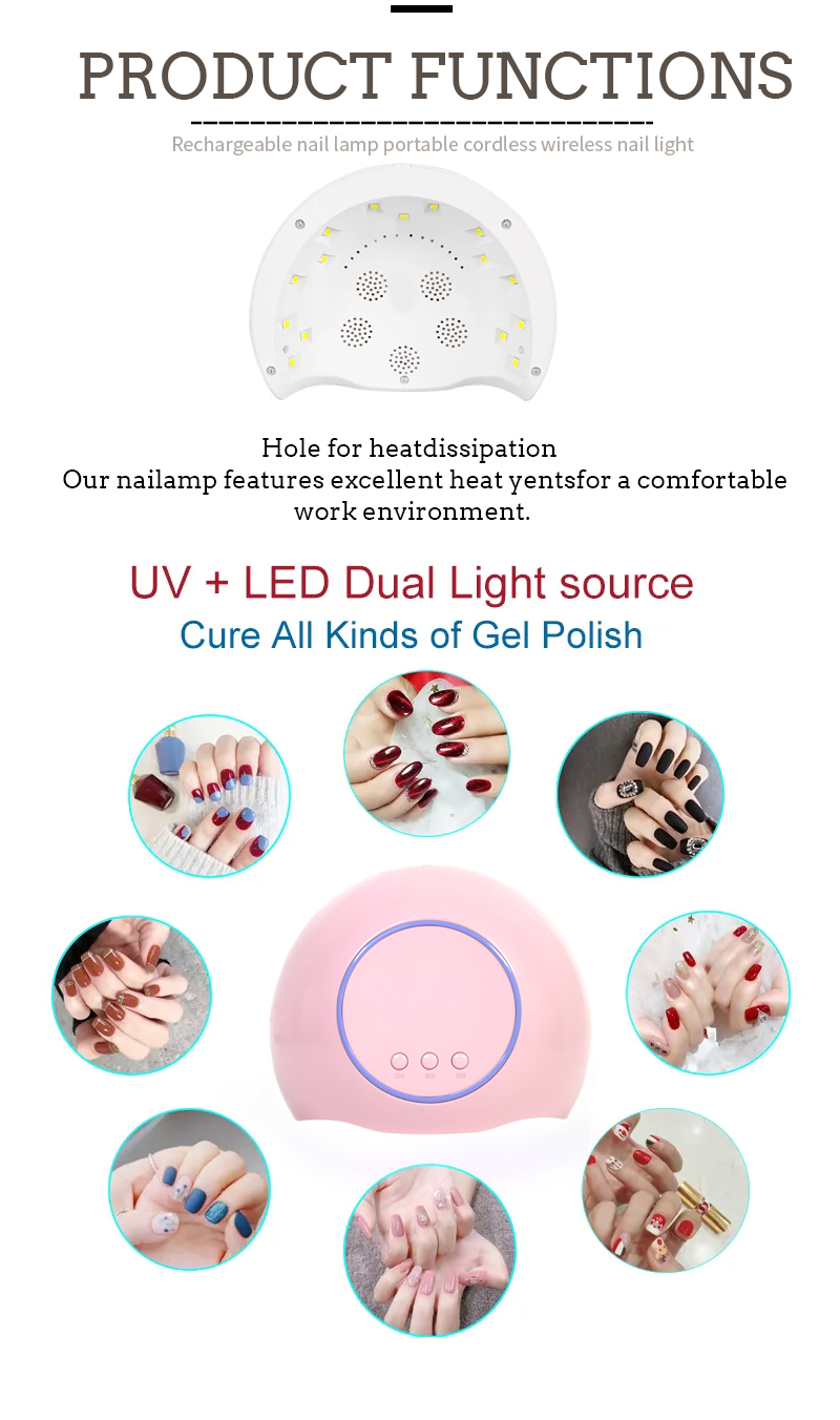Tuote varmistaa jopa liimakuivauksen ilman kutistumista. Sen kaksoisvalonlähteet tarjoavat lempeän lämmityksen käsien värimuutoksen ja silmäjännityksen estämiseksi, sopivat molemmille käsille ja jaloille, tuottaen huomattavan nopeasti kuivaustulokset.