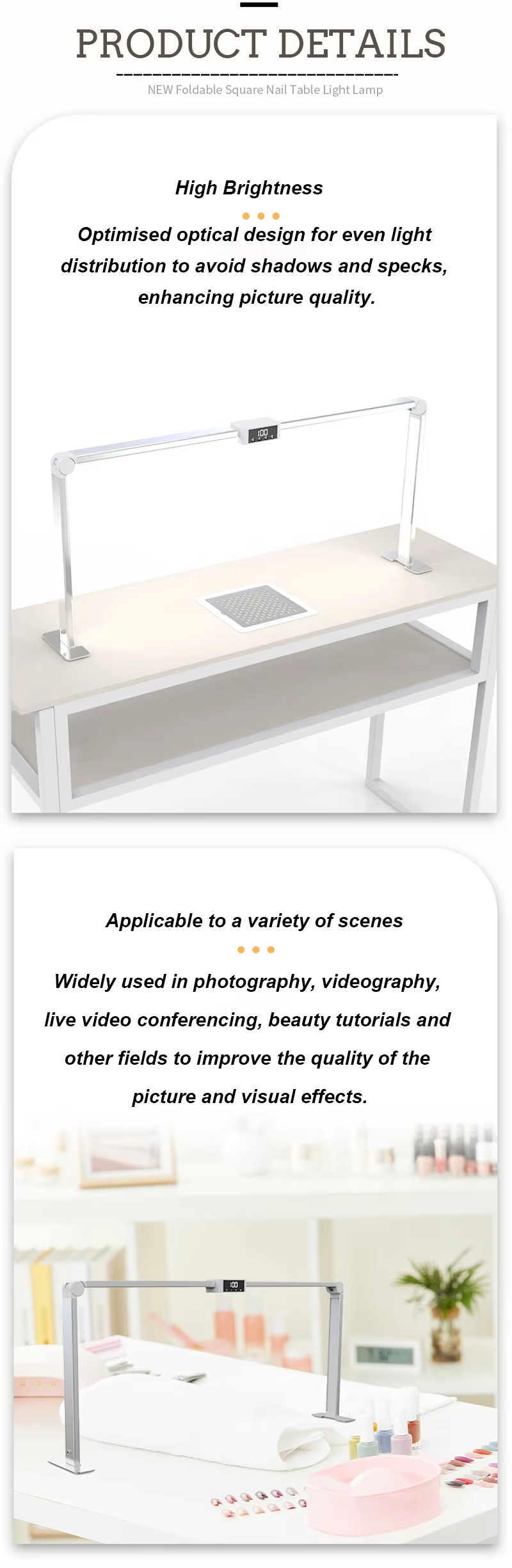 Kokoontaittuva suuri kiinnike, suuritehoinen superkirkas LED-pöytälamppu