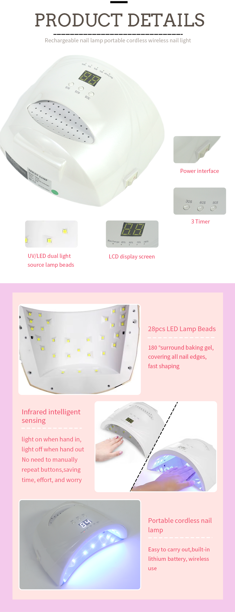 Tuote varmistaa jopa liimakuivauksen ilman kutistumista. Sen kaksoisvalonlähteet tarjoavat lempeän lämmityksen käsien värimuutoksen ja silmäjännityksen estämiseksi, sopivat molemmille käsille ja jaloille, tuottaen huomattavan nopeasti kuivaustulokset.