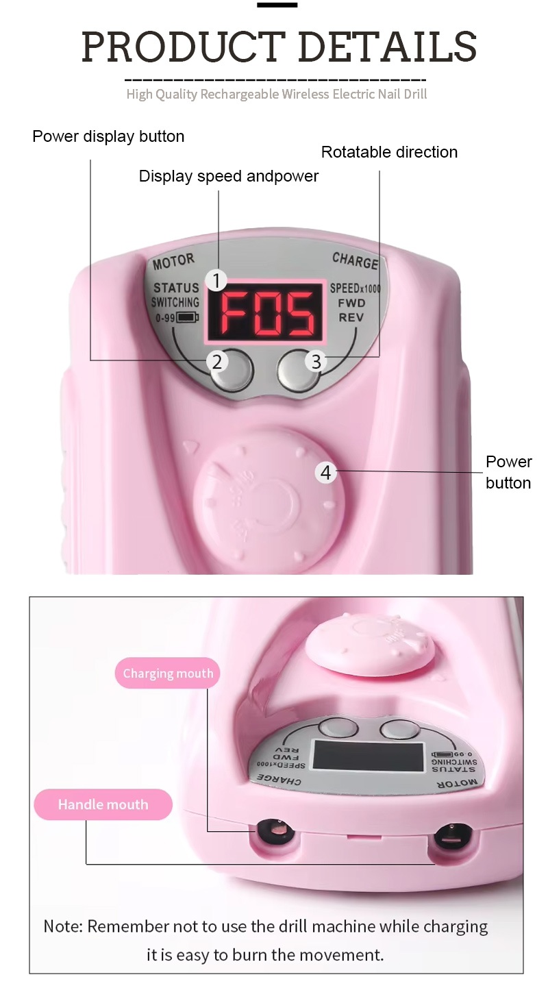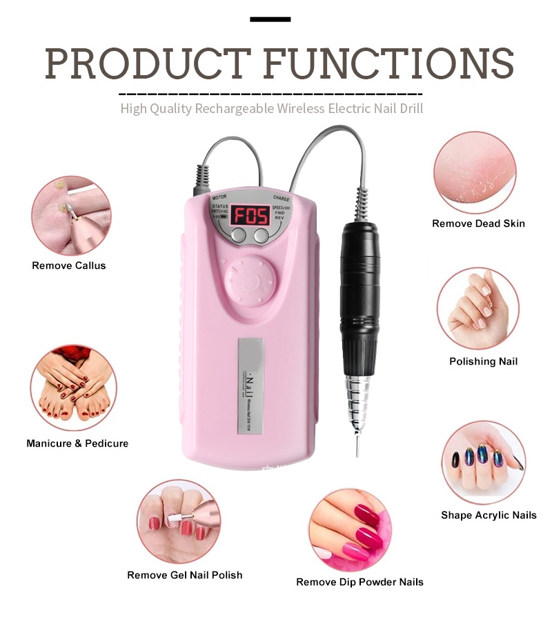 Tässä ammattikäyttöisessä akkukäyttöisessä sähkökynsiporassa on kaksi värivaihtoehtoa, musta/valkoinen/harmaa/sininen/punainen/vaaleanpunainen/oranssi, värikkäät värit.