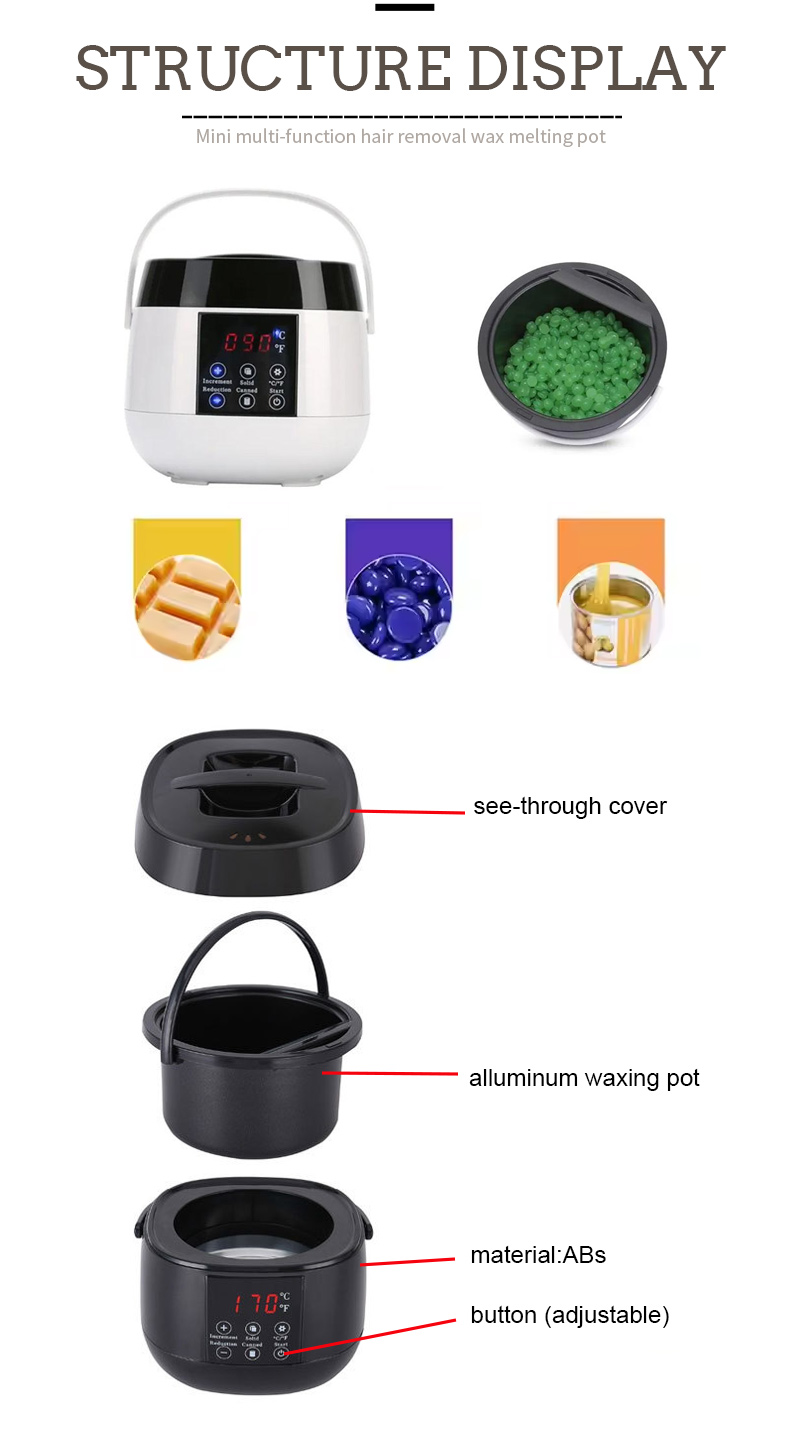 Suuri kapasiteetti sulattaa monenlaisia vahapapuja.ABS-muovikuori, kestää korkeita lämpötiloja, kuori on kiiltävämpi.