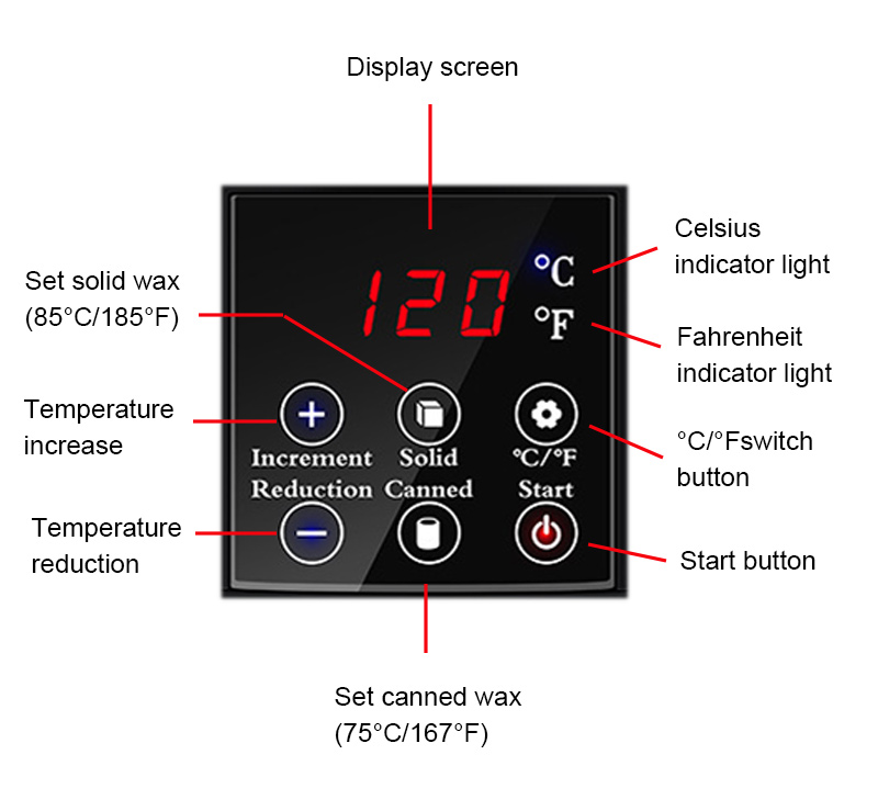 Tuotevahakone käyttää pääasiassa lämpörengasta lämmön tuottamiseen ja sulattaa kiinteän vahan tuottamalla lämpöä, 100g vahapavut tarvitsevat vain kymmenen minuuttia sulaakseen.