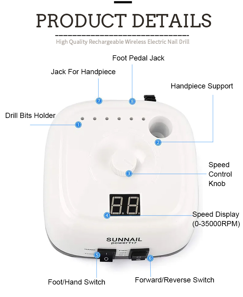 T17: n suurnopeuden 35000 rpm: n kynsilakanpoistoaineen sähkökynsitiedoston tuoteominaisuus ja levitys